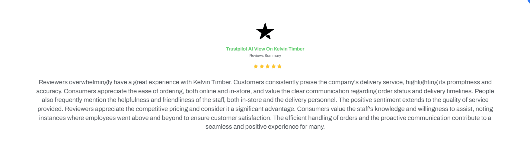 You will Allways know that yo will receive great quality from Kelvin Timber.