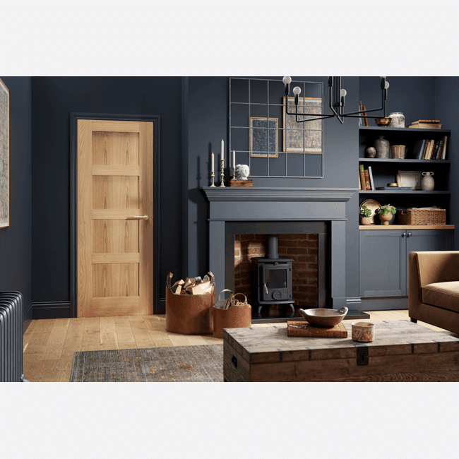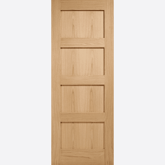 The four pronounced panels on this unfinished Oak door makes it a tasteful choice for any style of home.