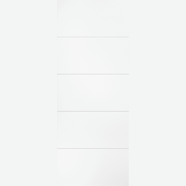 The modern Santandor features five panels in a ladder style design. With a white primed finish, this door is ready for a final top coat. This is a versatile option for you and the panelled design helps to form a sophisticated, sleek look. NB: Standard doors supplied semi solid core. FD30’s supplied solid core.